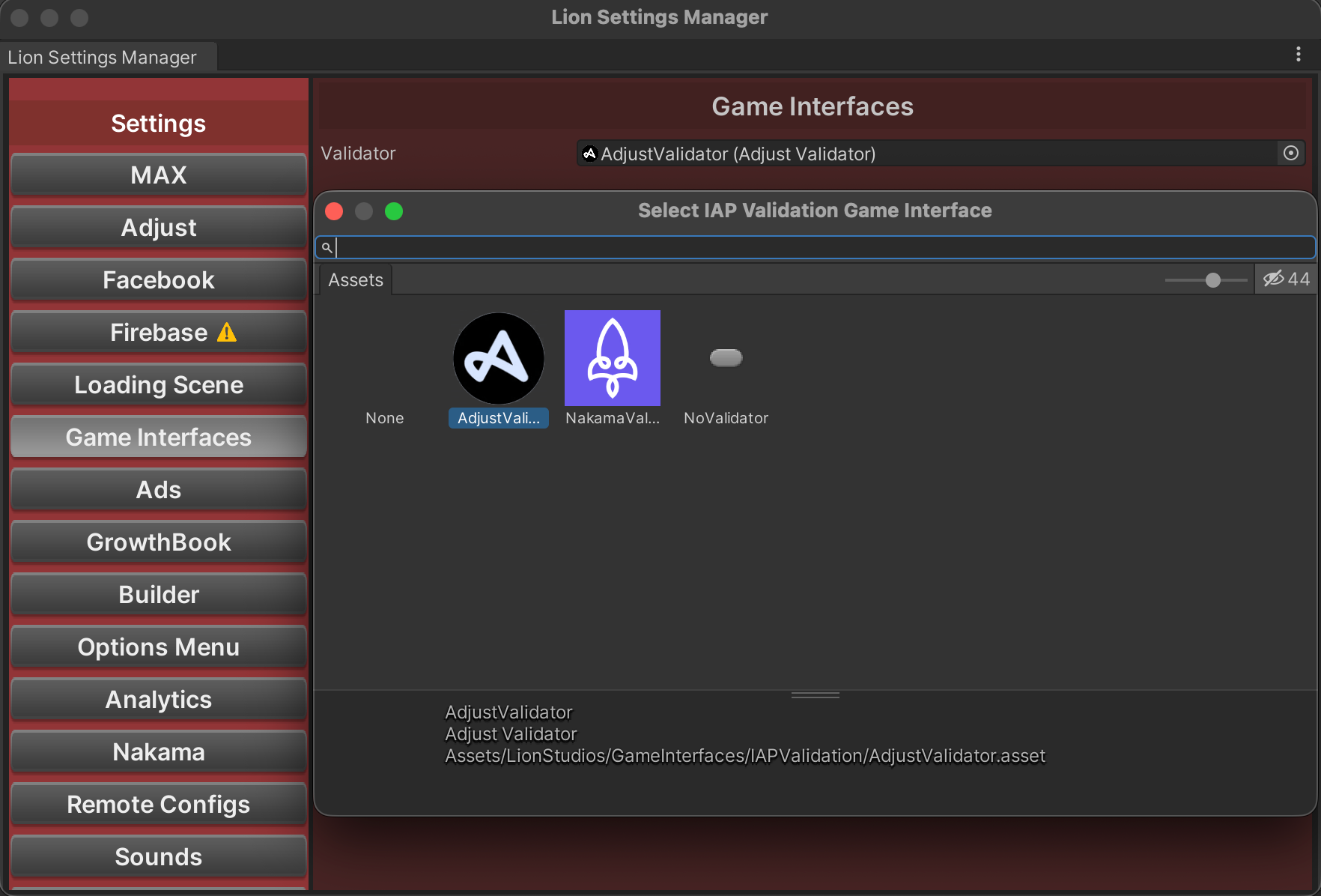 For external validators (i.e Adjust or Nakama), additional setup is required. This setup is explained in their own page as explained in next section.